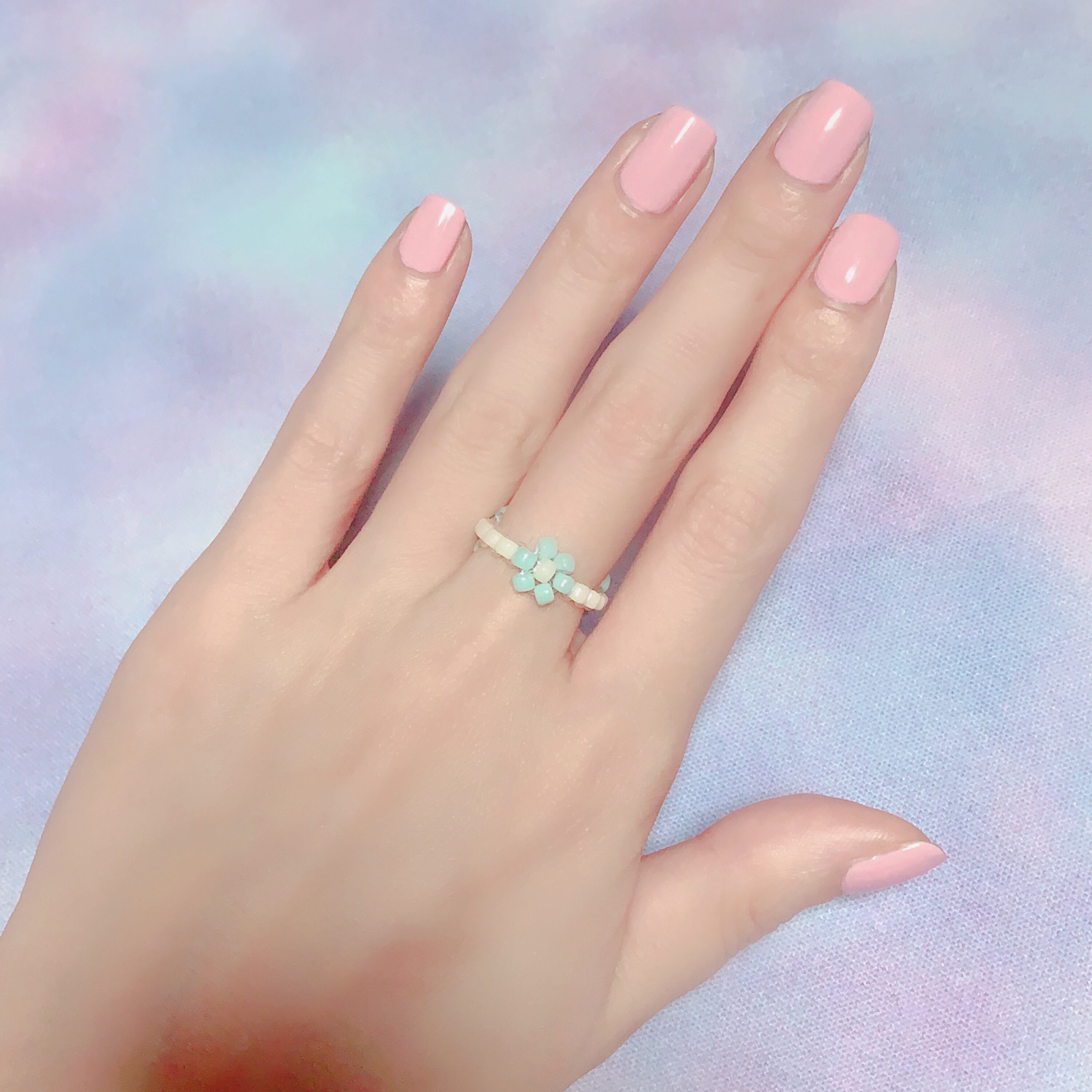 お花モチーフのビーズリングです。
